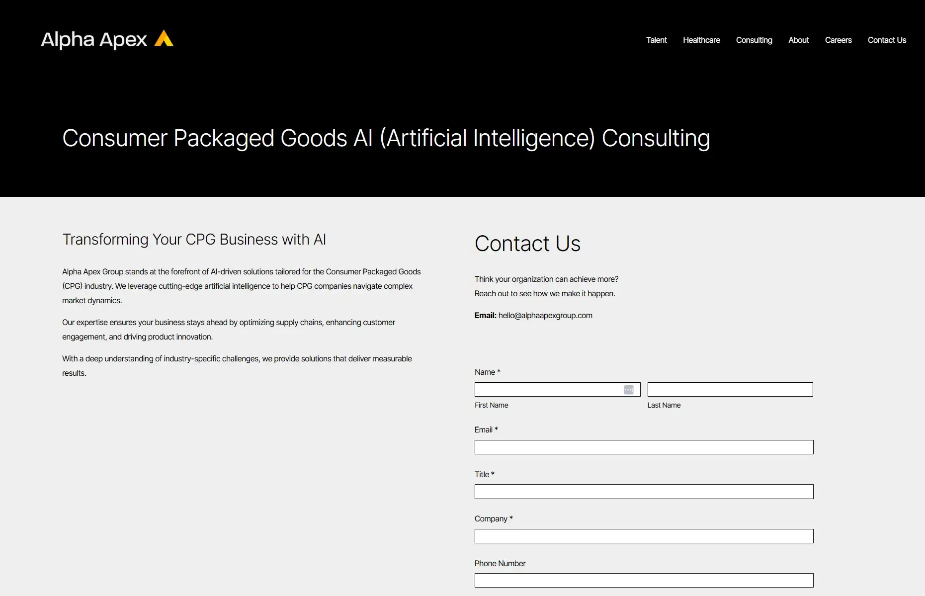 Alpha Apex Group. Leaders in Consumer Packaged Goods AI (Artificial Intelligence) Consulting.