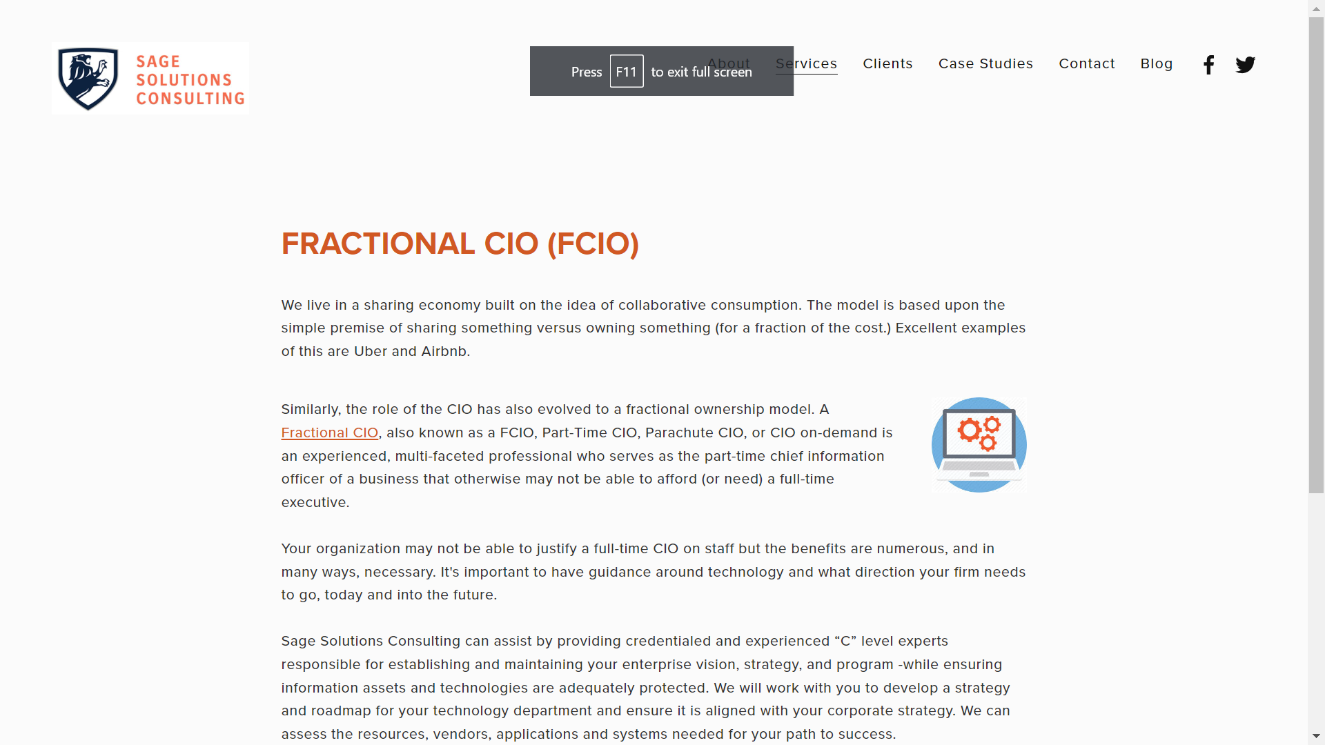 Sage Solutions Consulting's cost-efficient Fractional CIO model provides IT oversight and a coordinated, strategic partnership. This approach offers a comprehensive solution to manage all your IT needs effectively.