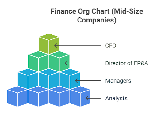 As companies scale, the complexity of financial operations increases. A typical mid-sized company might have a finance team led by a CFO, with a Director of FP&A overseeing a team of managers and analysts. This structure supports more sophisticated financial planning processes, including scenario planning and strategic initiatives.