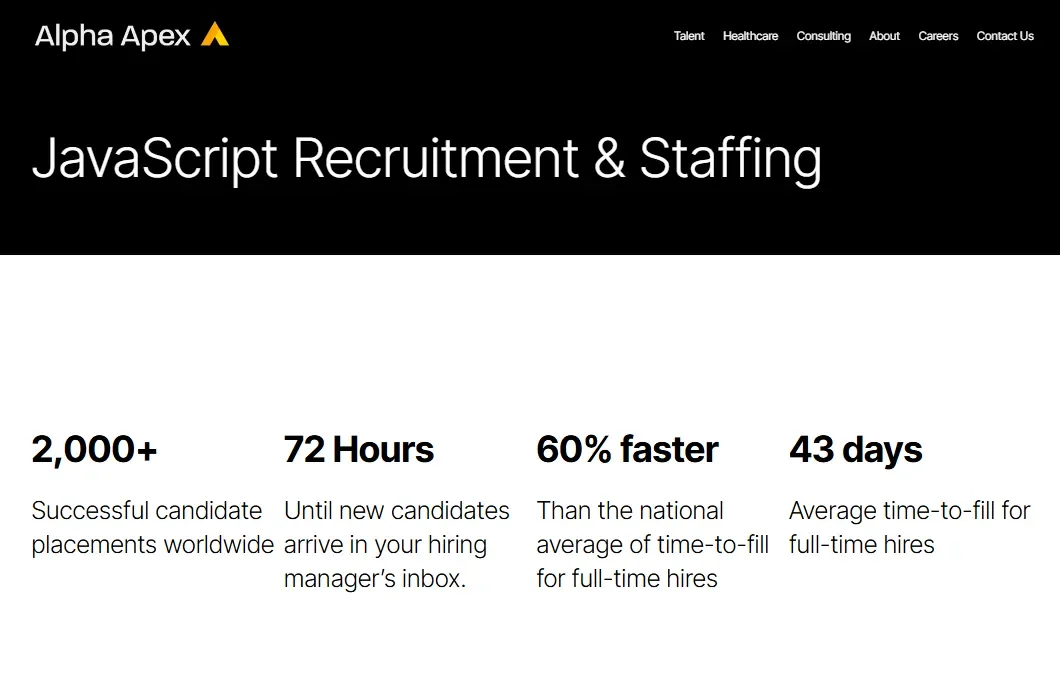 Their recruitment process is tailored to the specific needs of the tech industry, emphasizing not just technical proficiency but also the ability to adapt and thrive in fast-paced development environments. By maintaining a vast network of JavaScript developers across various levels of expertise, Alpha Apex Group facilitates connections that drive both immediate project success and long-term strategic growth.