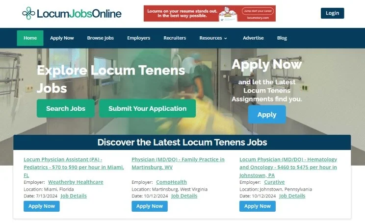 LocumJobsOnline is a prominent online job board that connects healthcare providers with locum tenens job opportunities across the U.S. The platform specializes in helping healthcare facilities connect with physicians, nurse practitioners, physician assistants, and other advanced healthcare professionals for short- and long-term locum assignments.
