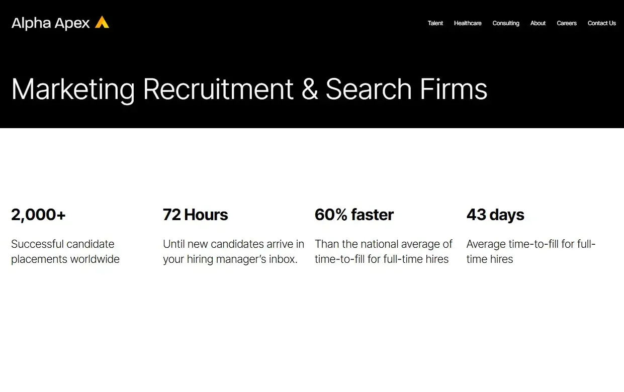 Alpha Apex Group: Alpha Apex Group leads the pack in marketing recruitment, offering tailored solutions that connect top talent with industry-leading companies, driving innovation and success in the ever-evolving marketplace.