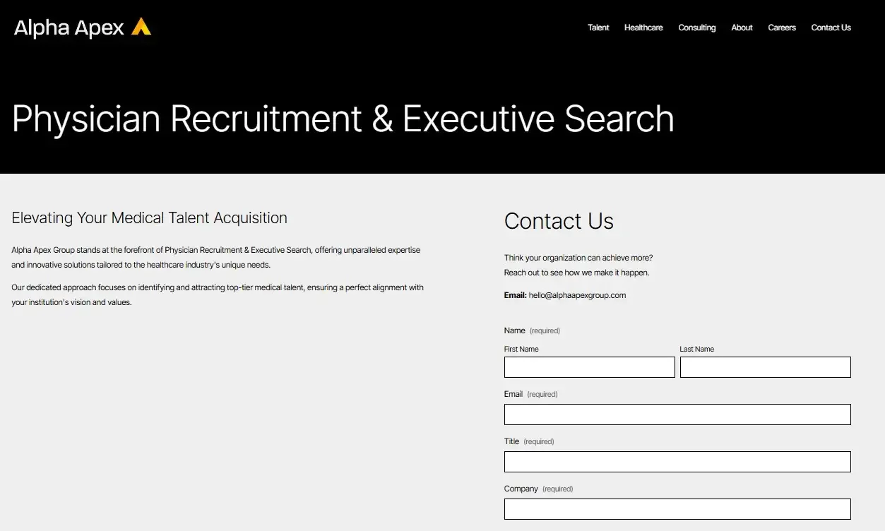 Alpha Apex Group distinguishes itself as a premier recruitment and executive search firm, specializing in the healthcare sector with a focus on physician staffing. Their expertise in matching top-tier talent with leading healthcare facilities ensures the provision of exceptional medical services. With an intricate understanding of the healthcare industry’s unique demands, Alpha Apex Group crafts personalized staffing solutions that align with both organizational needs and candidate aspirations.
