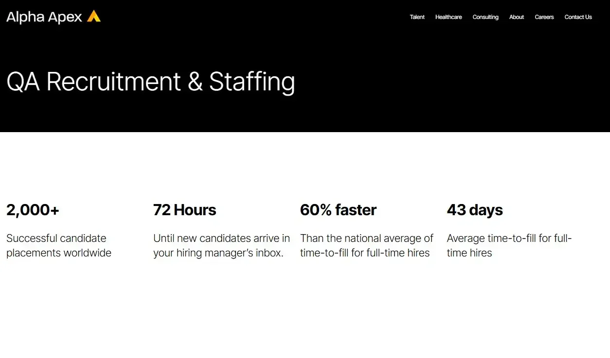 Alpha Apex Group: Alpha Apex Group, a distinguished leader in QA recruitment, connects companies with top-tier professionals possessing both technical expertise and a commitment to excellence, ensuring rigorous testing and product quality.