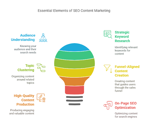 Here are the essential parts of an SEO-driven content marketing strategy: