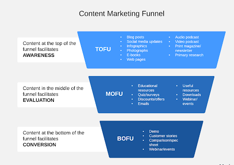Here’s a quick guide to the type of content that works and keywords that work for each funnel stage: