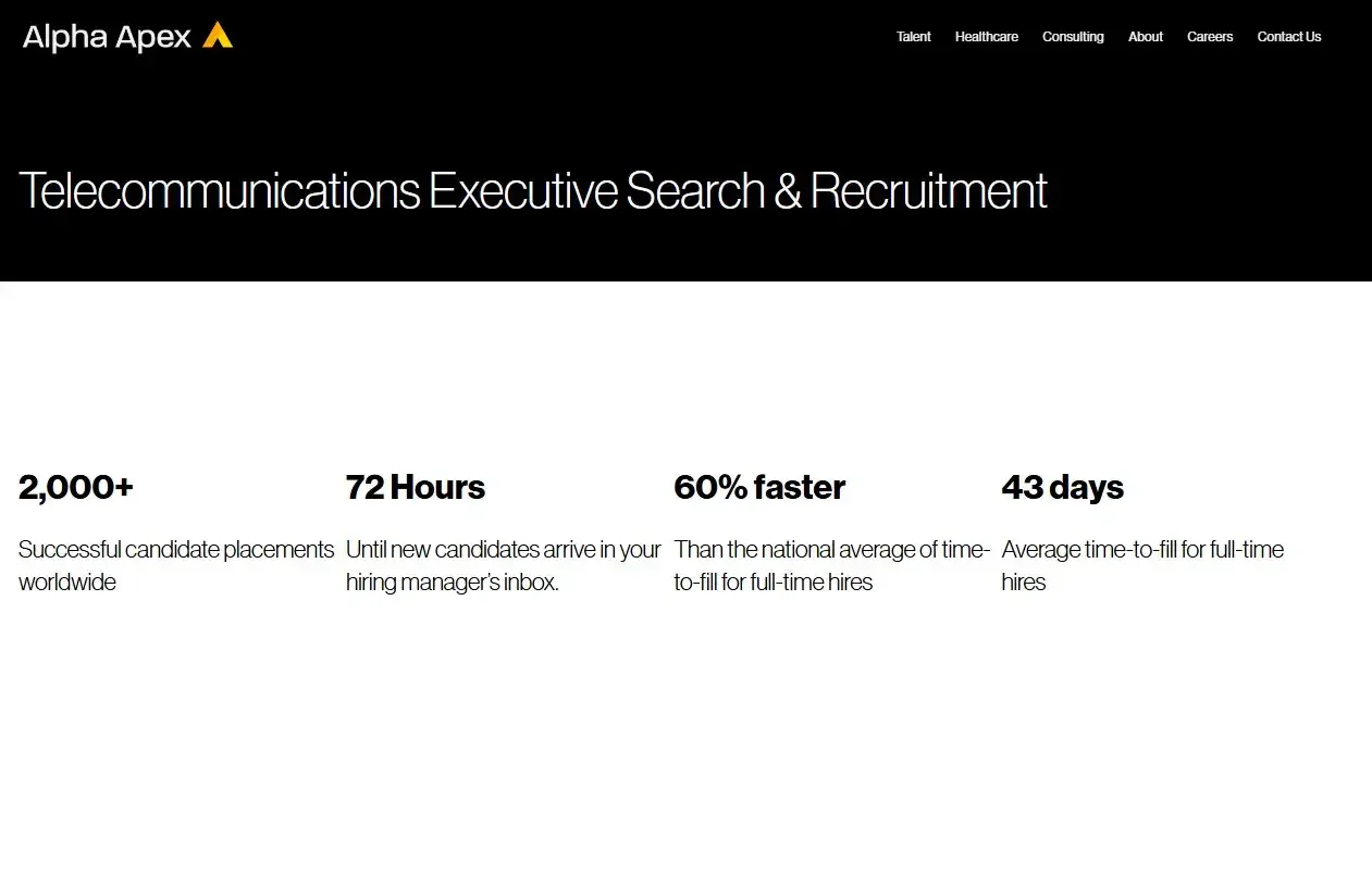Alpha Apex Group: Alpha Apex Group is a premier executive search firm for the telecommunications sector, specializing in connecting companies with visionary leaders skilled in innovation, network management, and strategic growth, ensuring they excel in a rapidly evolving and competitive industry.