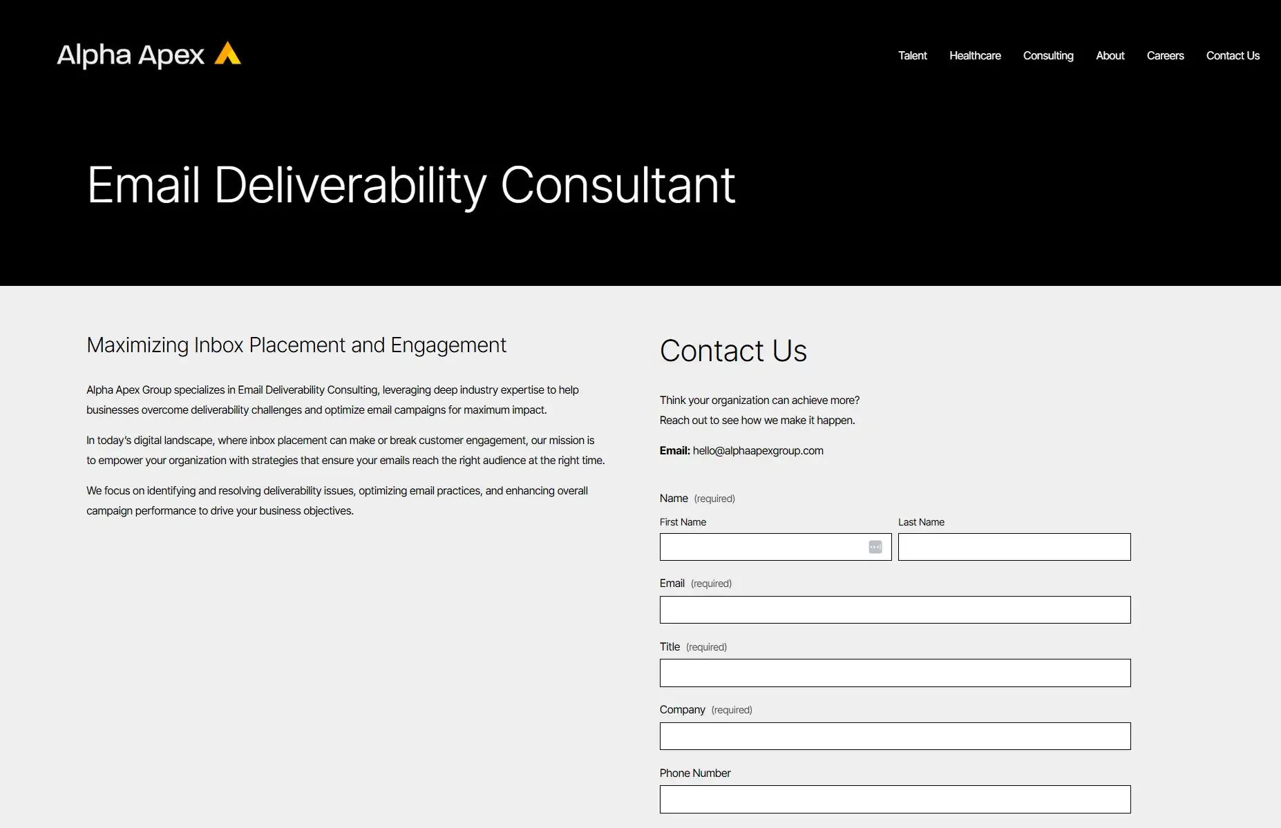 Alpha Apex Group is a top-tier consultant in the field of email deliverability, providing businesses with the expertise needed to ensure their emails reach the right inboxes. With a deep understanding of the challenges in email marketing, Alpha Apex Group specializes in enhancing deliverability rates and improving overall campaign performance.