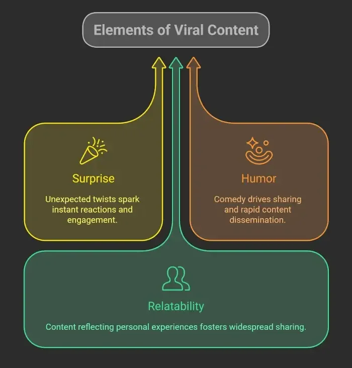 People don’t share content because it’s perfectly branded. They share it because it makes them feel something. Emotion is the fuel, and it usually comes in three flavors: surprise, humor, and relatability.