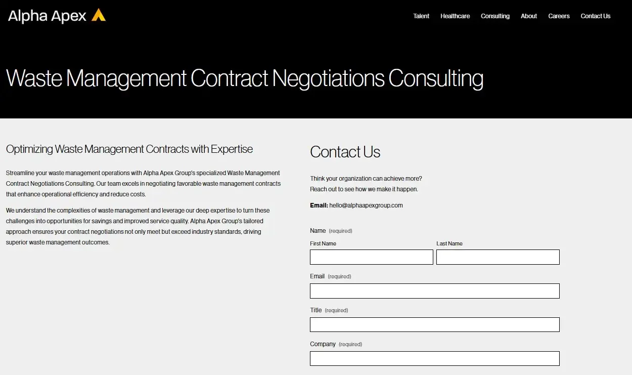Alpha Apex Group: Alpha Apex Group excels in negotiating favorable waste management contracts to enhance operational efficiency and reduce costs through strategic planning, vendor selection, cost analysis, and ongoing contract management.